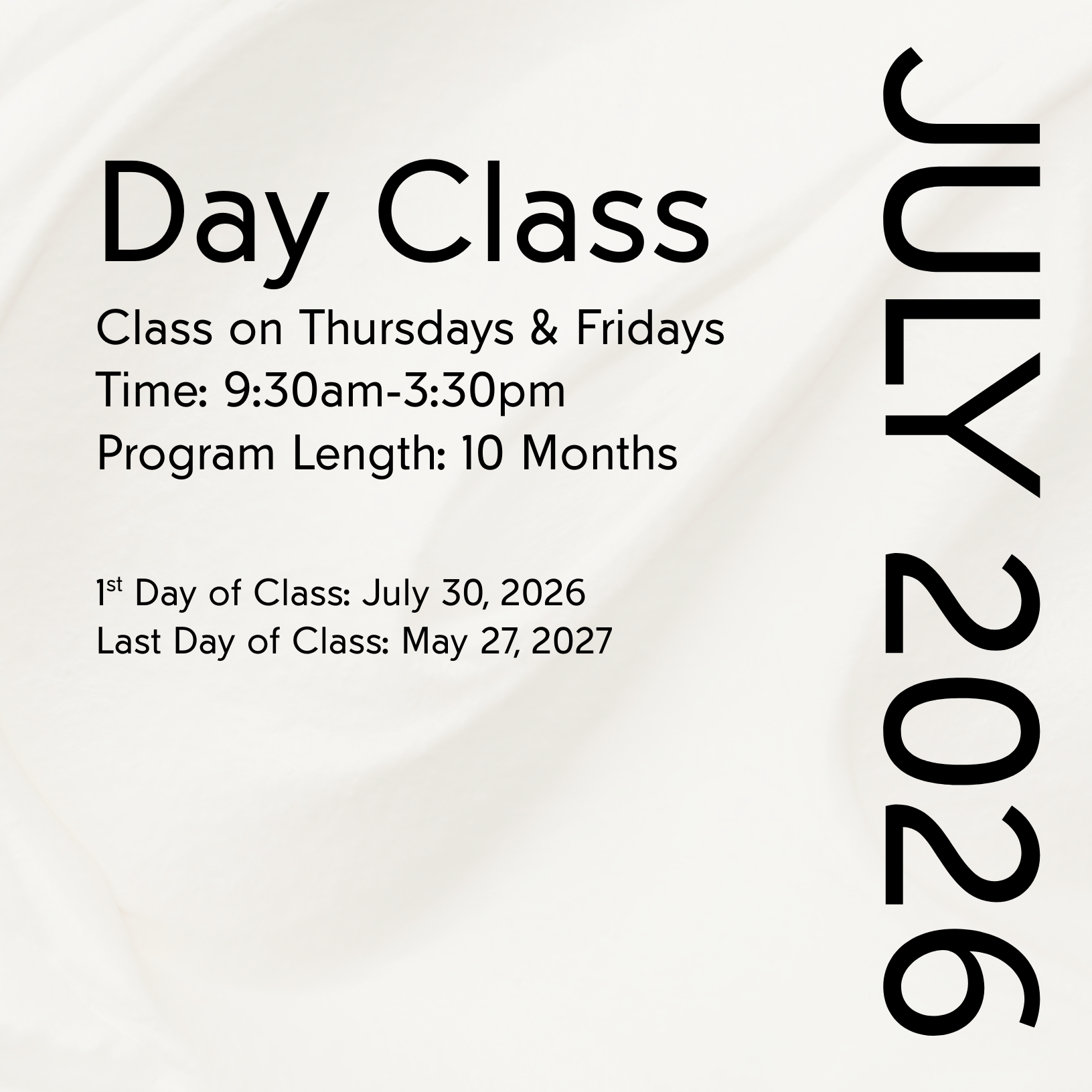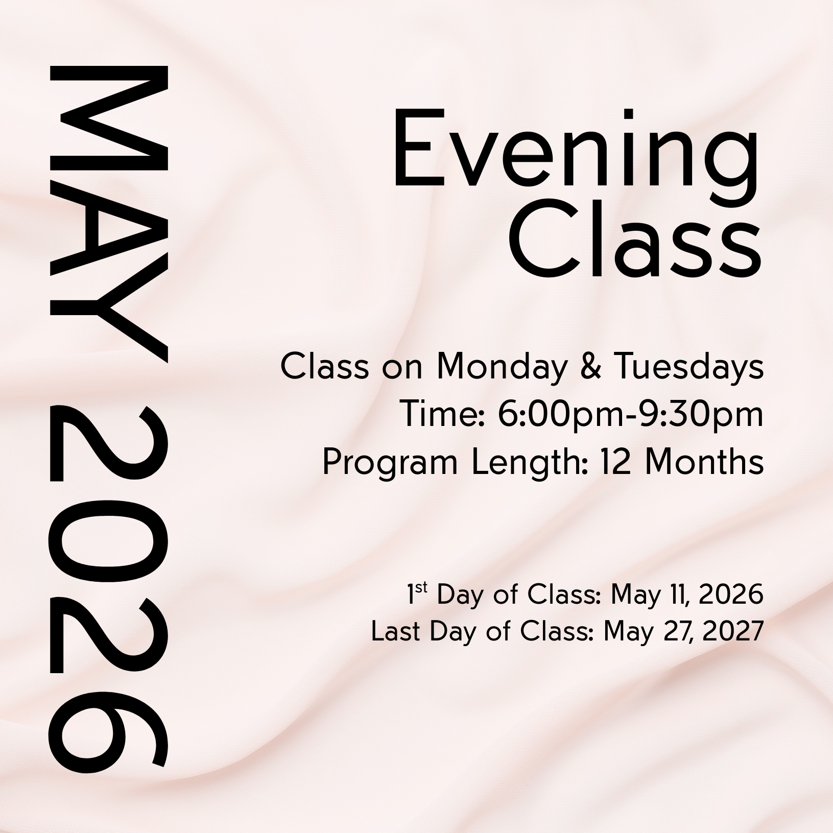 Enroll By last day of month prior to selected class start date to secure seat